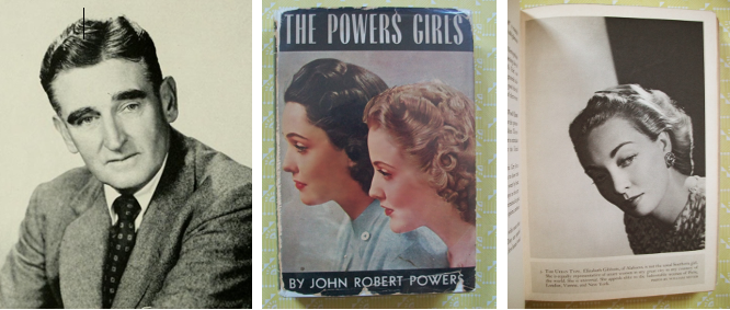 TYPING BOOK…John Robert Powers (1892–1977) wrote a bestselling 1941 book, The Powers Girls, that told “the story of models and modeling and the natural steps by which attractive girls are created,” organizing various models by type; at right, a page from the book featuring Elizabeth ‘Liz’ Gibbons—despite her Alabama roots, she was described by Powers as being “The Urban Type.” (Wikipedia/lastyeargirl.blogspot.com)
