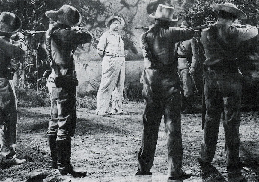 MAKE SURE YOU GET MY GOOD SIDE…Pancho Villa (Wallace Beery) faces a firing squad before receiving a last-minute reprieve in Viva Villa! (IMDB)