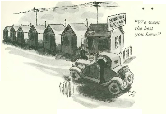 White also commented on the growing number of travelers, still pinched by the Depression, opting for the free section: