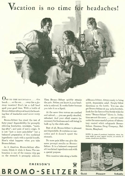 …the antacid and pain reliever Bromo-Seltzer was ubiquitous in 1930s medicine cabinets, but after the recipe was changed in the 1970s (all Bromides were withdrawn from the U.S. market in 1975) the brand slowly fizzled away…
