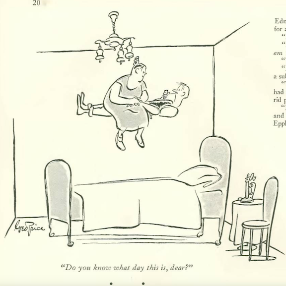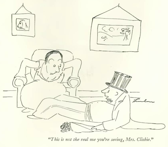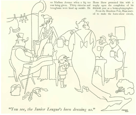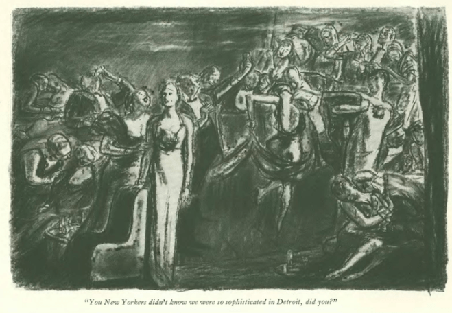 …William Crawford Galbraith gave us a fish out of water (the caption reads: You New Yorkers didn’t know we were so sophisticated in Detroit, did you?)…
