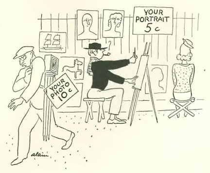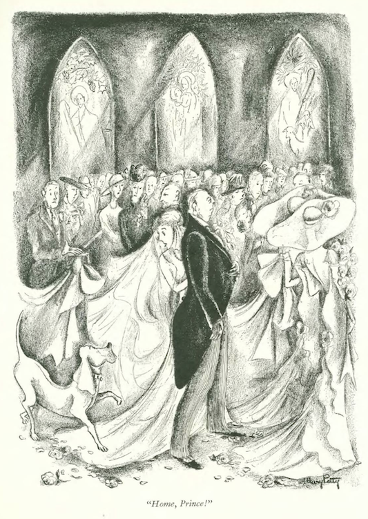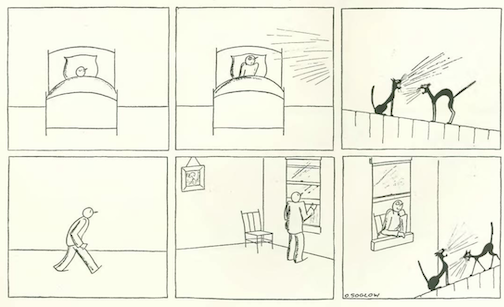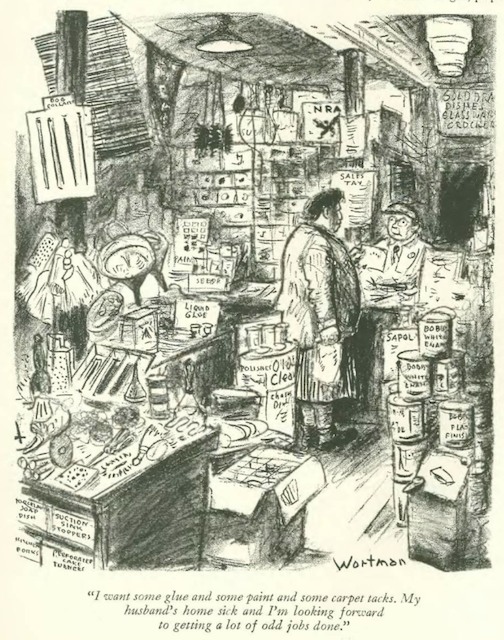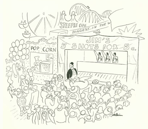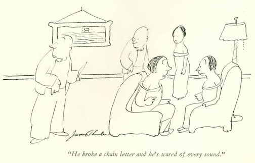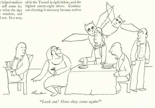 …which segues into our cartoonists, and this curious spot drawing by James Thurber…