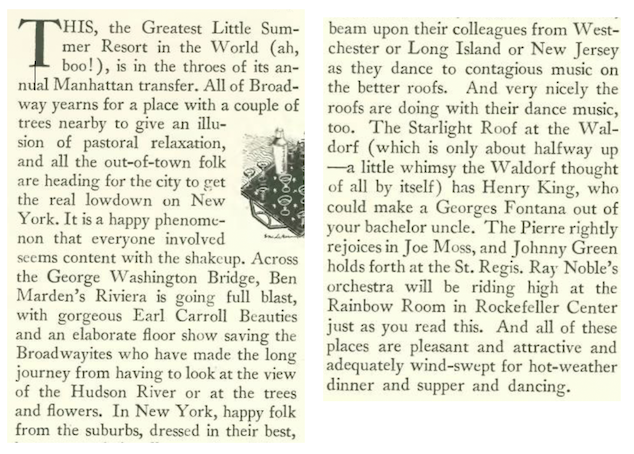 “The Talk of the Town” paid a visit to the Real Estate Exchange, where Vincent Astor re-acquired the St. Regis Hotel for five million and change. He then sunk another $500,000 (roughly $12 million today) into the hotel to further its luxurious status (including adding air-conditioning). The hotel’s famed King Cole Room and the Maisonette Russe restaurant opened in October 1935. Excerpts: