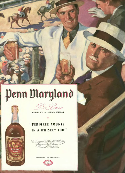 We begin with the inside front cover, Johnnie Walker strutting along at the horse races…