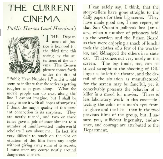 Mosher also checked out the latest from Robert Montgomery and Joan Crawford, who exchanged marital banter in No More Ladies, while George Raft went all gangster in Dashiell Hammett’s The Glass Key.