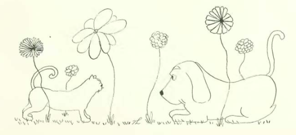 …interesting spot drawings by George Shellhase (top) and Leonard Dove (bottom right), and at left, two by Christina Malman…