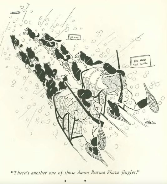 …Burma Shave jingles seemed to be everywhere in the 1930s, per Alain…