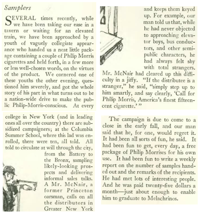 Tobacco companies like Philip Morris have long been savvy in finding ways to expand their market, including taking their product directly to the consumer, as “The Talk of the Town” explained in this entry: