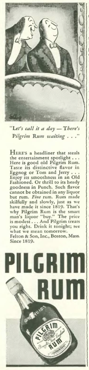 …William Steig continued to illustrate these one-column ads from Pilgrim Rum…