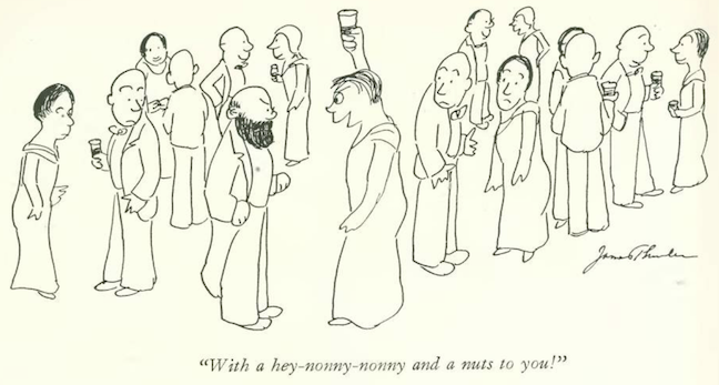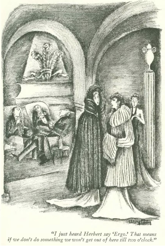 …which segues to our cartoonists…on the bottom of page 3 was this one-column drawing by Peggy Bacon…