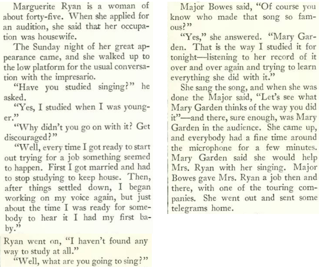 Markey next told the story of Marguerite Ryan, the “Singing Housewife”…