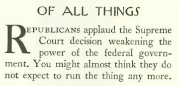 Howard Brubaker commented on a recent ruling by the Supreme Court regarding the ongoing fight by Republicans to curtail FDR’s New Deal.