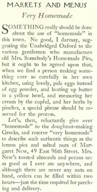 From 1934 to 1962 Hibben wrote the “Markets and Menus” column, which appeared in rotation with several other columns that were tacked onto Lois Long’s weekly “On and Off the Avenue.” Here is an excerpt from Hibben’s Feb. 1, 1936 column: