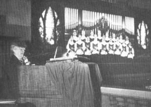 SAD CATHEDRAL OVERTONES is how E.B. White described the organ music of Mary Lee Read, who played organ in Grand Central’s north gallery from 1928 until the late 1950s. On the day after Pearl Harbor was attacked she played “The Star-Spangled Banner;” activity on the concourse ground to a halt, causing commuters to miss their trains. She was forbidden from playing the song after that. She has also been credited with saving the life of a man who was planning to commit suicide until he heard her play a moving hymn. (marthahallkelly.com)
