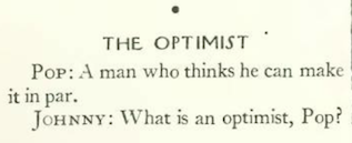 …a recurring column filler, “The Optimist,” appeared in Issue No. 1, and was featured in subsequent issues until Katharine Angell mercifully put an end to it.