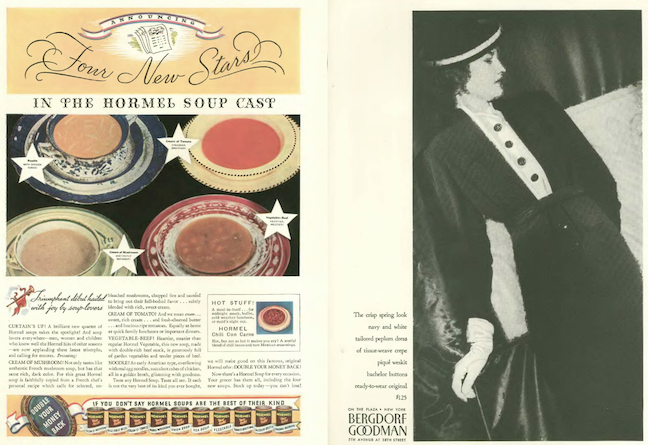 …the magazine’s opening spread once again featured the odd juxtaposition of canned soup and high fashion…