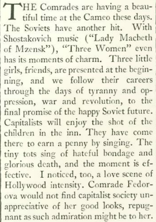 Mosher found much to like in a Soviet film about the struggles and hardships of three childhood friends from Petrograd who become nurses to serve the cause of the Bolshevik Revolution.