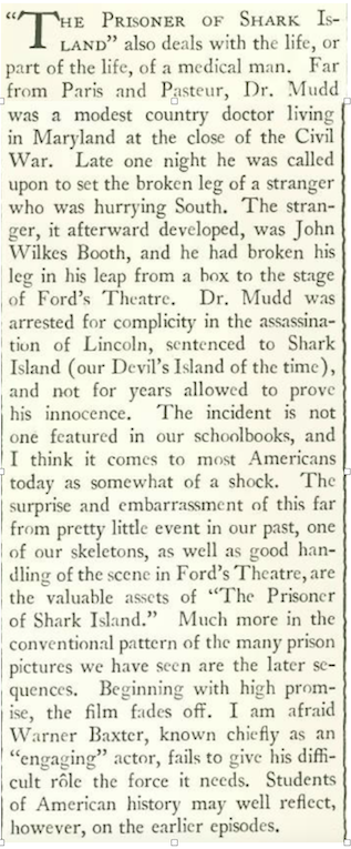 Mosher also took in The Prisoner of Shark Island, featuring Warren Baxter as a man falsely accused of complicity in the assassination of President Abraham Lincoln.