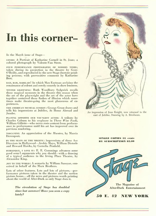 …Al Frueh contributed to “The Theatre” section…
