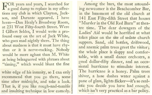 Long also noted the Beachcomber Bar, which originated in the basement of an old church, and actor Dan Healy’s Broadway Room.