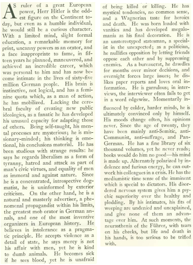 Janet Flanner completed her three-part profile of Adolf Hitler by looking into the man’s mind, if that was even possible.