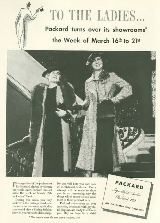 …the makers of Packard automobiles sent a condescending message “To The Ladies,” promising not to “bore them” with talk of mechanical features…