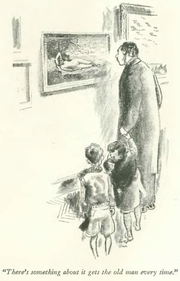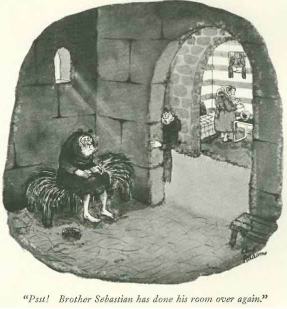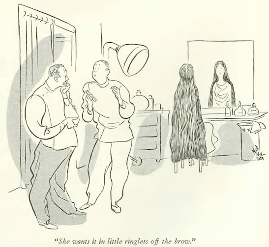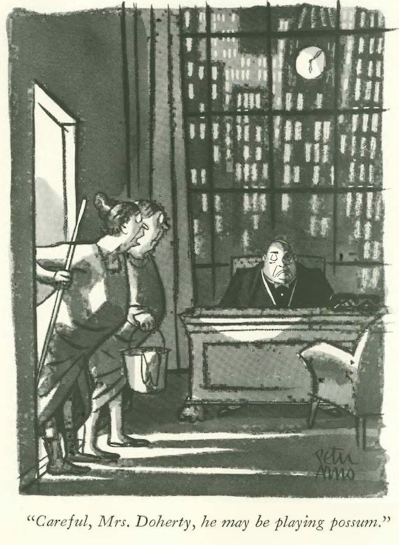 …Peter Arno’s charwomen let a sleeping dog lie…