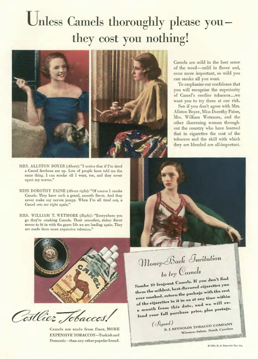 …R.J. Reynolds presented three women who exemplified the “society model” trend of the 1930s…well-known debs and socialites who provided an air of prestige to a brand…especially cigarettes…