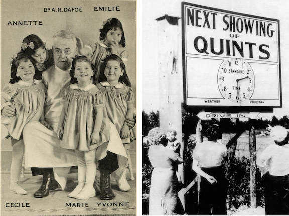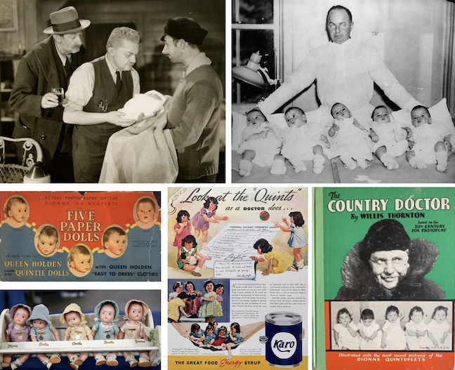 The Dionne Quintuplets, famed as the first quintuplets known to have survived infancy, appeared in a motion picture before their second birthday—The Country Doctor—just one example of the many ways the girls were exploited by the province of Ontario, their doctor, their father, and the companies who used their images to sell everything from toys to toothpaste.