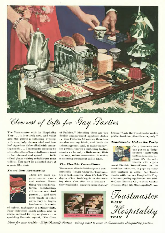 …the automatic toaster, still something of a novelty, was front and center at this holiday gathering…