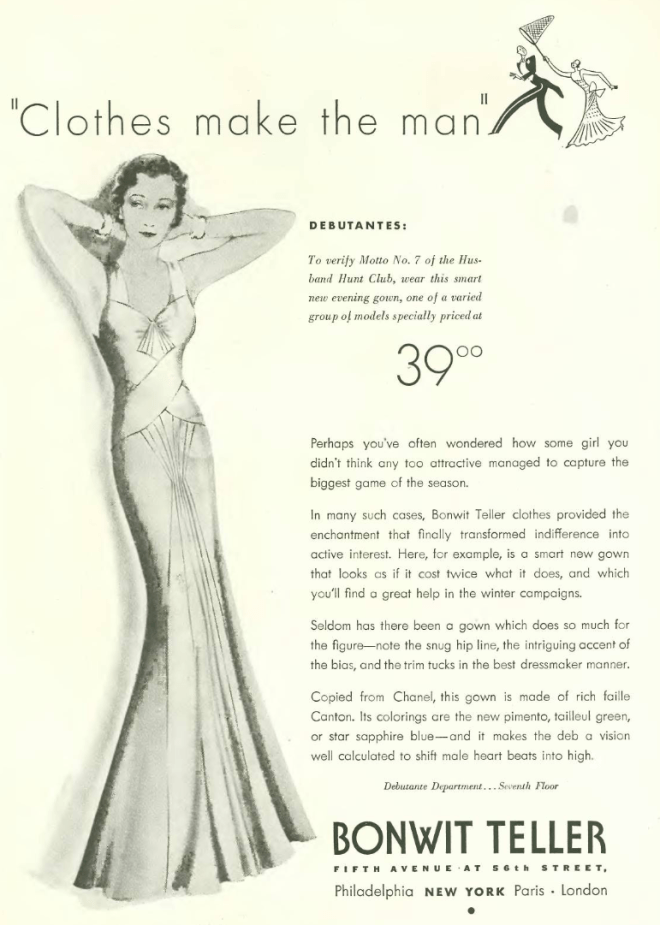 …and this swell get-up (below) from Henri Bendel…both Peet and Bendel were well-known in the 1930s. Cole Porter even referred to both companies in his songs…here is the refrain from “I Introduced” (from the 1919 show Hitchy-Koo):