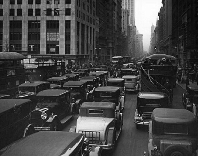 IF YOU BUILD IT, THEY WILL COME…Traffic clogs Fifth Avenue near 42nd Street in 1930. (digitalcollections.archives.nysed.gov)