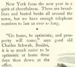 On to the Jan. 3, 1931 issue, we have Howard Brubaker (“Of All Things”) waxing sour on the state of the economy…