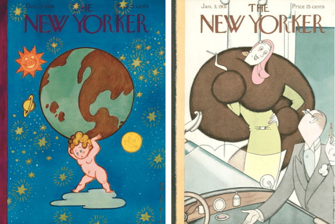 Rea Irvin rang out the old and welcomed the new with back-to-back covers for the Dec. 27, 1930 and Jan. 3, 1931 issues. The second cover commemorated the New York Auto Salon, mentioned later in this blog entry.