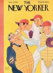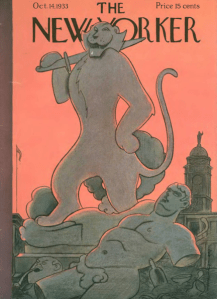 Wallace Beery (1885–1949) got his start in the comedy silents of the 1910s and became a star before the sound era made him an even bigger one; by 1932 he was the world’s highest-paid actor. Alva Johnston’s profile (titled “Jumbo”) took a look at Beery’s life and career (illustration by Al Frueh). Excerpts: