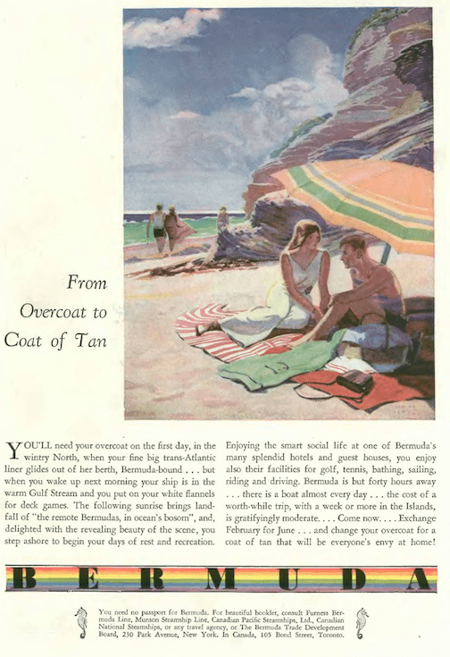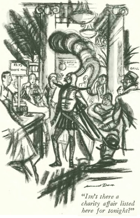 Many advertisers played to the Anglophilic tendencies of New Yorker readers, particular ones selling garments to the sporting gentry who aped their British cousins in such pursuits as polo and dressage…here we have “play clothes” from the menswear company Rogers Peet…