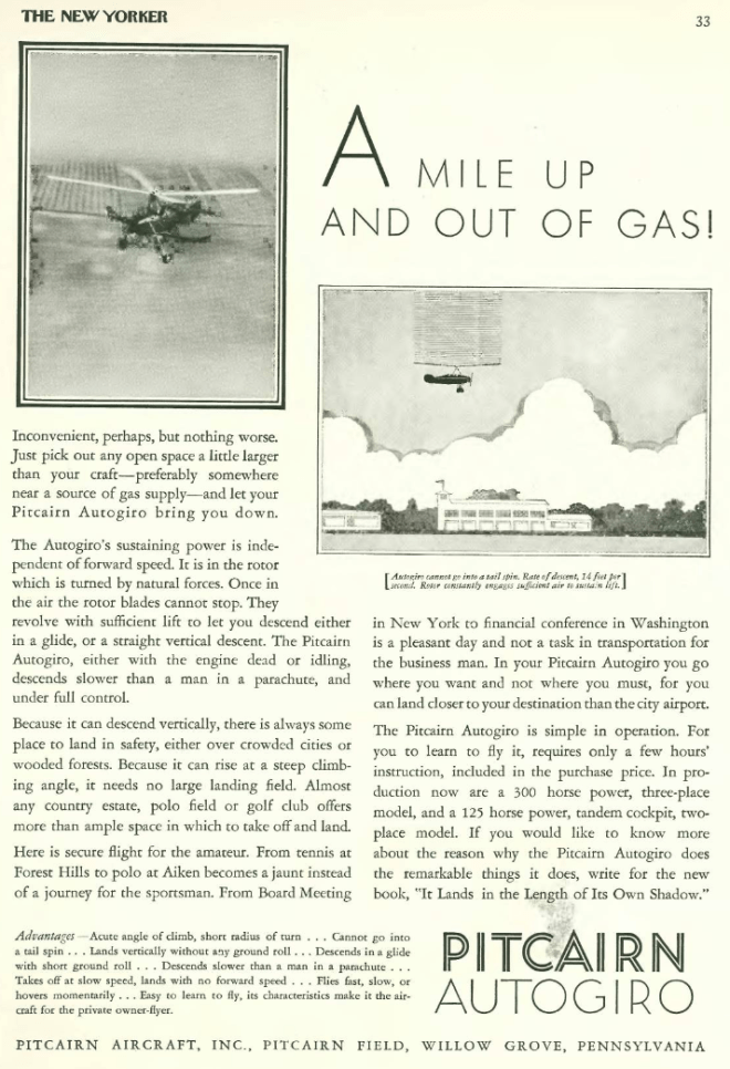 …if you were a modern man or woman of means, you could ditch the auto altogether and get yourself a Pitcairn autogiro…