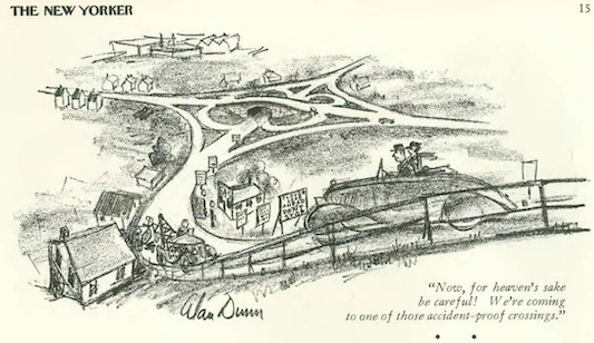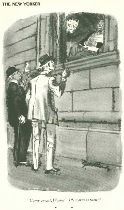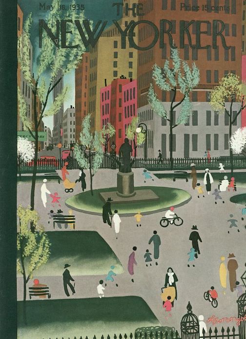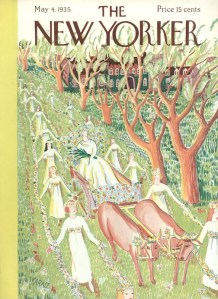 …and I close with today’s New Yorker cover artist, Roger Duvoisin—here is his cover for White Snow, Bright Snow, which won the Caldecott Medal in 1948.