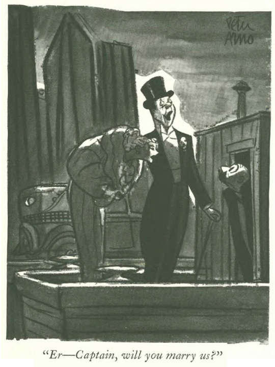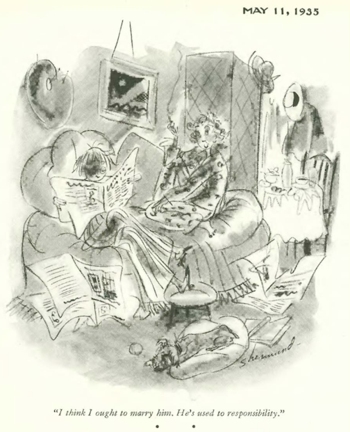 …Whitney Darrow Jr illustrated a literary exchange on a park bench…