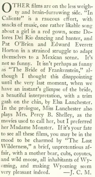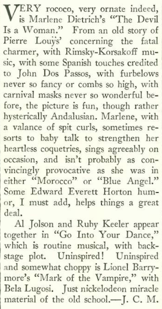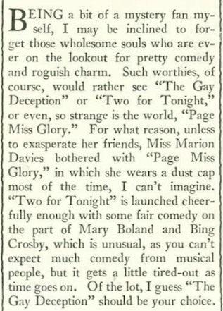 One might think that a film featuring the destruction of Pompeii would have some thrills, however RKO’s The Last Days of Pompeii proved to be a “temperate affair” in Mosher’s eyes, “one of the great bores of the moment.” The Dick Powell/U.S. Navy vehicle Shipmates Forever didn’t prove to be any better.