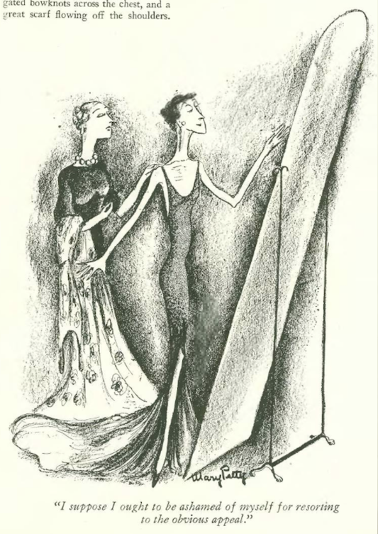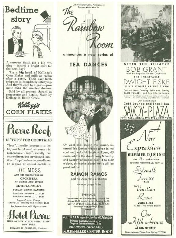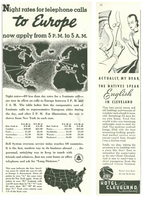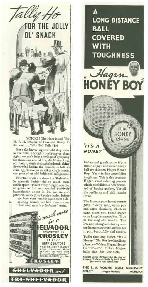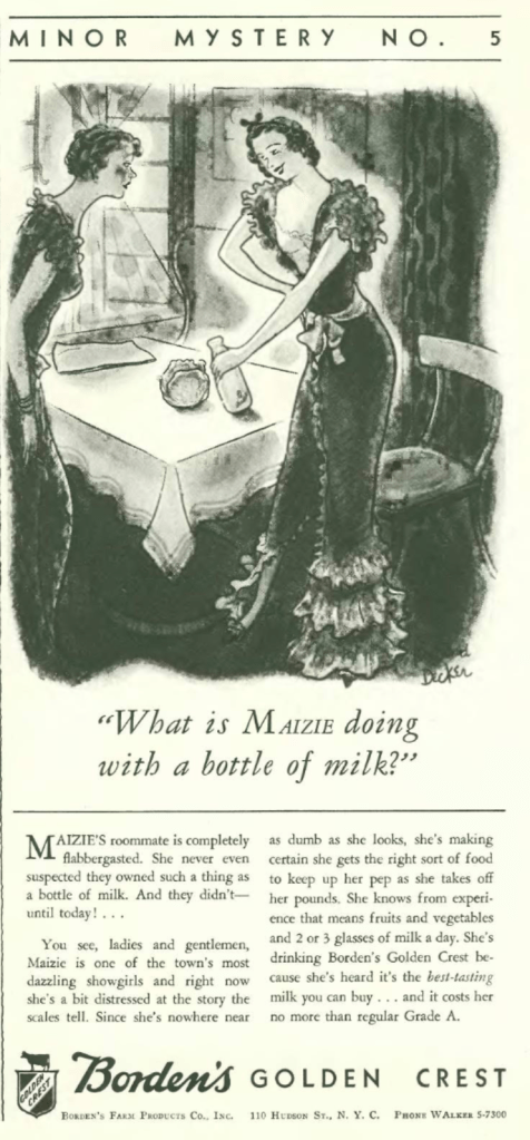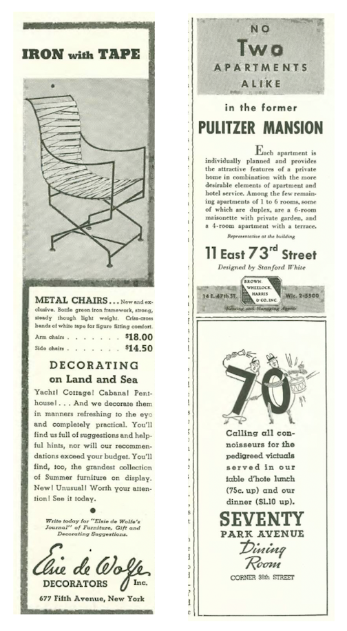 …there were many fall and winter fashion ads in this issue, including this continuing series by Russeks promoting Rayon fabrics…and women smoking, no doubt considered a sign of sophistication…