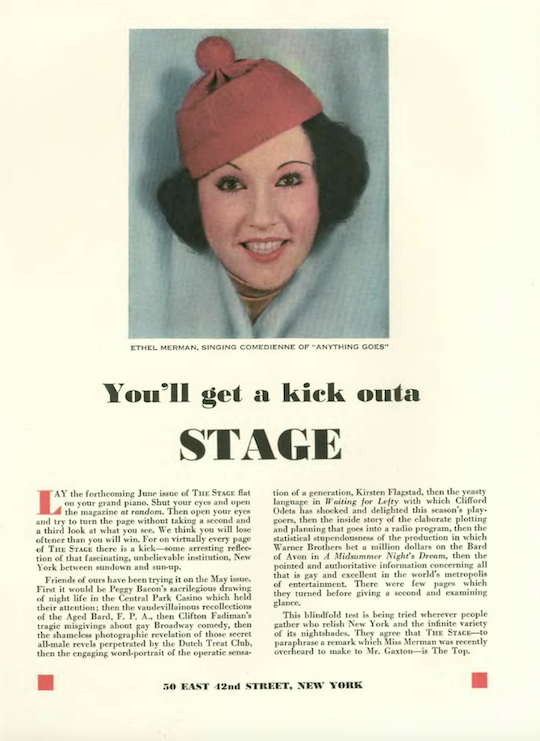 …the Heyward/Gershwin production of Porgy and Bess made a splash in this ad for Stage magazine…