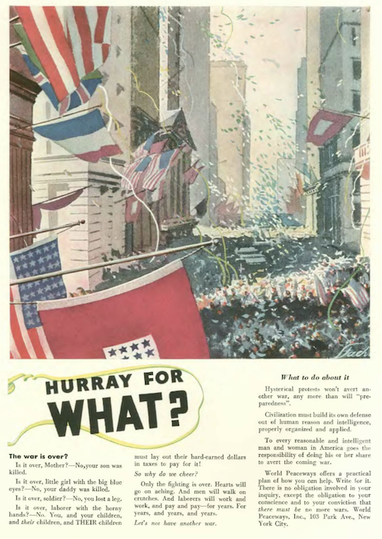 …World Peaceways often used terrifying imagery to promote their anti-war messages…this ad was on the inside back cover…