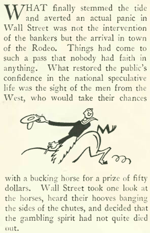 …and expressed schadenfreude over “a fat land quivering in paunchy fright” and some satisfaction in confirming his suspicions that “our wise and talky friends” on Wall Street really didn’t know what they were talking about: