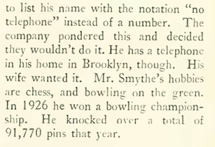 …Coates concluded by describing Smythe’s aversion to the telephone, and his talent for bowling…