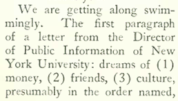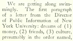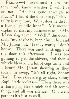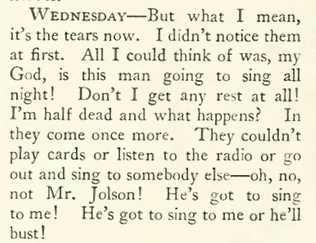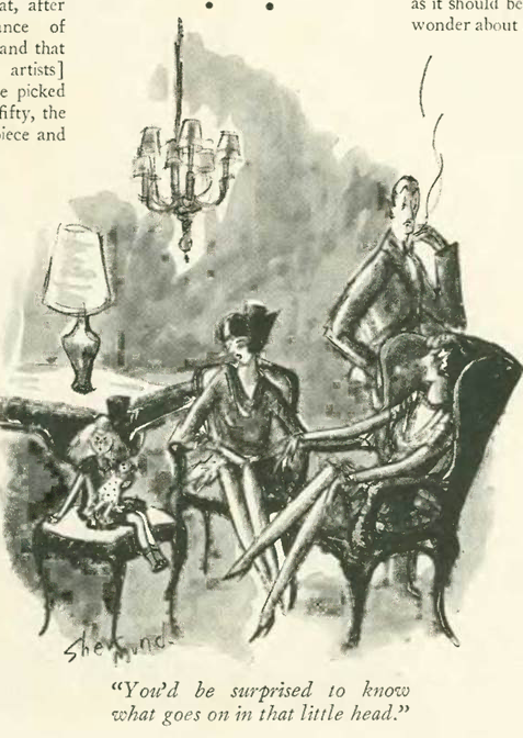“It is all so discouraging; so very, very, sad. Six million people in New York, and apparently no one in the white-collar class who can lose himself for a moment in the ecstasy of a roller-coaster. Six million people in New York, and every one of them a curious little study in maladjustment. Thousands of young men who own dinner jackets, and I am always drawing someone who makes scenes in public because he once had a little cat that died and he has never got over it.”