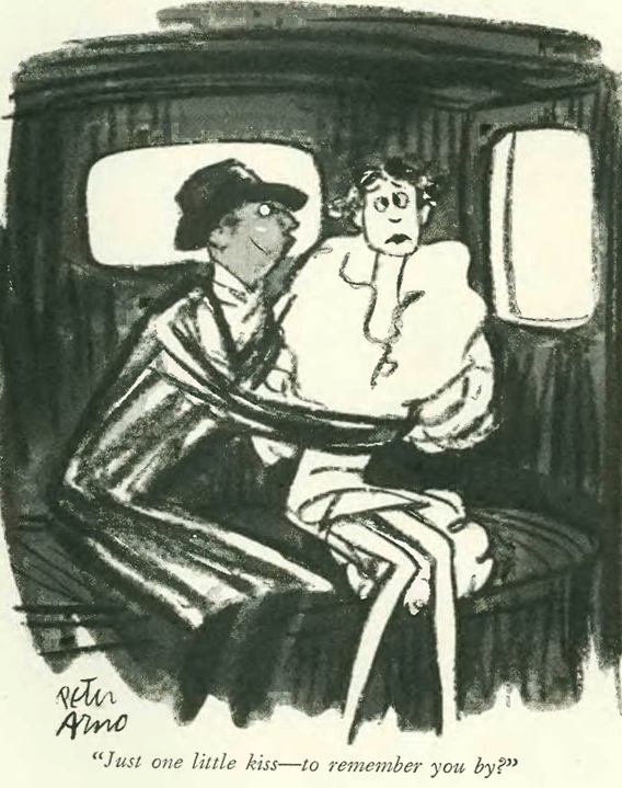 …Peter Arno illustrated unexpected intimacy on a commuter train…