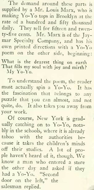 HowardBrubaker also finished the decade on a wry note, his “Of All Things” column ending thusly: