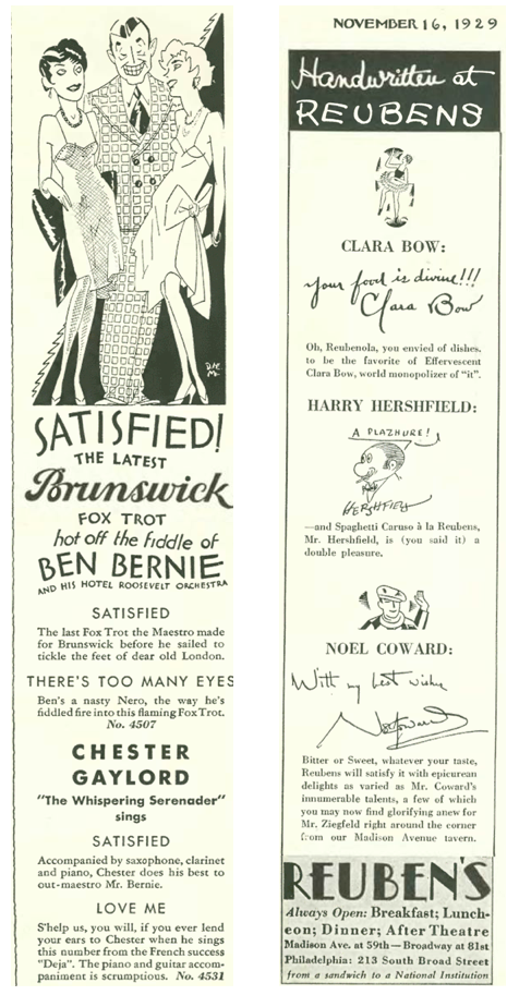 …for some in the posh set, the days of fine dining at places like Maillard’s (with this all-French ad) would be coming to an end thanks to the market crash…actually, Maillard’s itself would come to an end in the 1930s, thanks to the Depression…