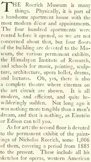 In his weekly art gallery column, Murdock Pemberton noted the New Year’s Day opening of the New School for Social Research in a “timid landmark” designed by Joseph Urban of theatrical design fame. The school’s boardroom featured a series of murals by realist painter Thomas Hart Benton.